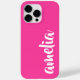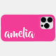 Cobrir de telefone cor-de-rosa com o seu nome em uma fonte de script branca em um fundo rosa-quente. Design de cor e cor.