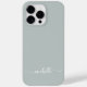 Capas de iphone Personalizada Personalizada de Script de Assinatura Personalizada com Nome de Monograma Mínimalista Elegante Verde de Sage Simples. Este design com seu primeiro nome em um estilo bonito, escrito à mão, estilo swash tail tipografia de assinatura no fundo verde sábio ou verde empoeirado. Tão fácil de personalizar. Excelente presente feminino para aniversário, doce festa de aniversário 16, dia da mãe, para festa de formatura e é para a garota que ama coisas na moda únicas.