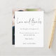 Roteiro de Obrigados e Amor de Casamento. Um alternativo MENOR de 4,5" x 5,6", compatível com o orçamento. Disponível em um STOCK de PLACA SEMI GLOSS 110 lb ou um STOCK de PAPEL THINNER SATIN FINISH 80 lb. Os envelopes são um extra opcional. Um design de tipografia minimalista com um roteiro de estilo de letra de na moda definido para Amor e Obrigados. No verso, substitua a imagem por sua favorita do dia como guardiã para seus convidados. Personalize facilmente o resto do texto com sua mensagem e nomes.