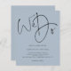 Um valor para o alternativo do ORÇAMENTO em tamanho menor de 4,5 x 5,6" de semirbrilho de 110 lbs, que é de espessura semelhante a um cartão postal (no entanto, não é adequado para uso como cartão postal). POR FAVOR, OBSERVE QUE HÁ UM convite por roteiro de folha: Nós fazemos o convite de casamento azul empoeirado. Um simples, mas elegante design tipográfico em azul empoeirado. Os envelopes são um extra opcional. Script do conjunto de na moda: Nós fazemos o palco central no topo.O resto do texto que você pode personalizar facilmente. As cores de texto e de fundo podem ser alteradas se você quiser se adequar melhor ao seu tema de casamento através da opção personalizar mais.