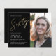 O moderno minimalista 60º convite de aniversário apresenta o script manuscrito 60 com número de folha de ouro falso em na moda e detalhes de seu partido em fonte serif clássica sobre cor de fundo preta, simples e elegante, convite de aniversário para homens e mulheres, para a surpresa do excelente. a cor de fundo preta pode ser alterada para qualquer cor de sua escolha.