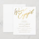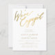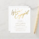 Simples caligrafia de ouro falso e chico branco claro que estamos engajados no roteiro de convite para festa de noivado de BARATO BUDGET.