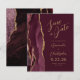 A borda esquerda deste elegante casamento moderno salve o cartão de data apresenta uma borda vermelha e borrifada de cor-d-água cortada com falso brilho dourado. O texto personalizável combina um script dourado e fontes sans serif em um fundo burgundy. O lado inverso apresenta uma burgundy e uma design de agata dourada.