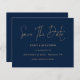 Há duas opções de papel a escolher para esse tamanho (4,5 x 5,6") na faixa de Orçamento. Para este produto, eu recomendaria o semibrilho, que é um estoque de cartão de 110 gsm, semelhante em espessura a um cartão postal. A opção Satin é um papel muito mais fino, 80gsm. O padrão é definido como semirbrilho. POR FAVOR, NOTE que existe UM por folha. Marinho Minimalista De Orçamento Casamento Dourado Azul De Script Salve A Data. Simples elegância com Salvar a Data em um script moderno.O resto do texto que você pode personalizar facilmente. Mostrado aqui em ouro em azul-marinho, entretanto, as cores de texto e plano de fundo podem ser alteradas se você desejar por meio da opção personalizar mais.