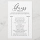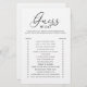 Quer um jogo fácil e agradável que faça seus chás de panela se misturarem e rirem? Não olhe mais do que o Elegante Roteiro Adivinha Quem Chá de panela Jogo! Este jogo minimalista preto-e-branco tem convidados que combinam as respostas da noiva e do noivo a questões de relacionamento iluminadas. É uma forma excelente de ver quem realmente conhece melhor a noiva e o noivo! O simples e elegante design ajustado qualquer tema de chá de panela e faz uma manutenção especial para a noiva.