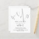 Escrito Elegante Nós Fazemos Convite De Casamento. Um alternativo de 4,5 pol x 5,6 pol com preço inferior. Disponível em um STOCK DE CARTÃO SEMI-GLOSS 110 lb, que é a opção padrão (mais espesso para convites), OU um STOCK de PAPEL THINNER FINISH 80 lb FINISH (ideal para gabinetes). Os envelopes são um extra opcional e são ligeiramente maiores que o tamanho da placa. O script do na moda set We Do está em cinzas no topo com os nomes ligeiramente sobrepostos no topo. O resto do texto que você pode personalizar facilmente.