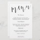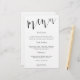 Tamanho 5,5" x 8,5" a um preço orçamentário, Elegante Script Any Color Wedding Menu. Este design moderno tem Menu em um roteiro elegante no topo e o resto do texto centrado abaixo do qual você pode personalizar facilmente. As cores do texto e do plano de fundo em ambos os lados podem ser alteradas para qualquer uma de suas opções por meio da opção personalizar mais.