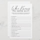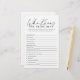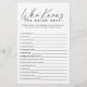 Escreva seu chá de panela preto e branco moderno com o Elegante Script que Conhece o Melhor Jogo da Noiva! Este sofisticado jogo de chá de panela apresenta uma fonte de script minimalista para uma aparência limpa e eterno. Ria-te e liga-te às tuas memórias favoritas da noiva enquanto tentas provar que sabes o melhor dela. Com perguntas pensativas que provocam conversas, este jogo faz uma celebração sincera. Perfeito para um chá de panela clássico e íntimo com amigos próximos, o Elegant Script Game adiciona um toque de distinção. É uma maneira memorável de honrar a noiva enquanto reunia seus convidados. Faça do seu chá de panela um que se lembre com este jogo único!
