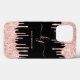 Girly, Elegante, Sylish Blush Rosa Glitter Drips 2 Monograma Script personalizado nome personalizado capas de iphone monograma. Apresentando um moderno falso luxo, cor-de-rosa rosa rosa rosa-rosa, um quadro de gotejamento dourado, uma grande fonte de script monograma com letras duplas com pestanas (iniciais de tamanho grande) e um nome de fonte serif em cor-de-rosa em fundo preto. É fácil personalizá-lo. presente feminino excelente para namorada, mãe, aniversário e para qualquer pessoa que goste de coisas brilhantes bonito.