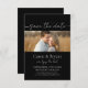 Script Elegante Salve o Convite Monograma de Data. Este convite para fotos é a combinação perfeita de simples elegância e design minimalista com uma foto para comemorar seu dia especial. Monograma na parte de trás e design mínima de preto e branco para o seu casamento, aniversário ou ocasião especial.