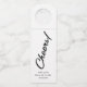 Estes cabides simples e na moda dizem "aplausos" em um roteiro manuscrito para um visual preto e branco moderno.