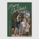 Script Merry Christmas Arch Magnetic Card apresenta um roteiro divertido e moderno em uma foto arquivada, juntamente com uma segunda foto no verso e na sala para sua mensagem.