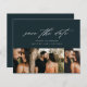 Um orçamento, foto mínima de script, salve o cartão de data com belas caligrafias de script, 3 fotos e texto mínimo na frente. O verso inclui o site do casamento para mais informações. Clique no botão editar para personalizar este design.
