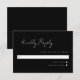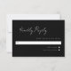 Placa de resposta mínima de script 3,5 x 5. Texto branco sobre fundo preto. Parte de uma coleção de casamento.