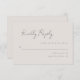 Placa de resposta mínima de script 3,5 x 5. Script de cinza escura em um fundo bege claro. Parte de uma coleção de casamento.