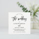 Este convite de casamento moderno, preto e branco apresenta a tipografia de argumentos de tendências e um layout simples e na moda.