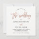 Este convite de casamento rosa e preto moderno, falso, apresenta a tipografia de argumentos de tendências e um layout simples e na moda.