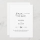 Este roteiro moderno salva o cartão de anúncio de data é perfeito para um casamento minimalista. O simples design preto e branco apresenta uma tipografia industrial única, com estilo boho moderno. Personalizável em qualquer cor. Mantenha o design mínimo e elegante, como está, ou personalize-o adicionando seus próprios gráficos e trabalhos de arte.