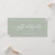 Este certificado de presente moderno, verde sábio e branco apresenta uma elegante tipografia de script manuscrito, Você pode adicionar seu logotipo e um código QR às costas para uma aparência simples, na moda e profissional.