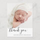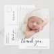 Obrigado de anúncio de nascimento moderno que você faz cartão postal com cheio sangrando foto na frente e caligrafia elegante. Pode ser personalizado com sua própria mensagem e estatísticas de bebês.