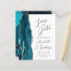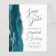 A borda esquerda deste elegante casamento moderno salve o cartão de data apresenta uma coloração azul lacrimogênea cortada com falso brilho prateado. O texto personalizável combina a escrita manual de cinzas de carvão, as fontes em copperplate e itálico em um fundo branco. O verso apresenta um design de barro e de agata prateado correspondentes.