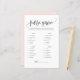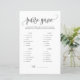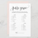 O que há na sua bolsa? Adicione este jogo divertido e divertido da bolsa da noiva ao seu evento. Ele apresenta uma escrita branca preta, tipografia clássica, fundo rosa-claro. Você pode personalizar a parte traseira deste cartão de jogo de chá de panela. Este cartão de jogo é perfeito para qualquer tema e estação do chá de panela.