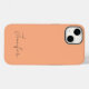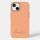 Proteja seu novo telefone do zero com este moderno Caso iPhone 14 Personalizado do Script Chic Chic do Pastel Laranja. Ele é simples e elegante, projetado com o nome na fonte do script manuscrito em letra de árvore de cinza no centro inferior. O fundo é um pêssego laranja claro personalizável. Clique na opção personalizar modelo e digite o nome.