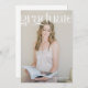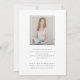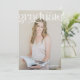 Este anúncio de graduação de na moda apresenta duas fotos da faculdade ou do formando segundo grau. Um script retrorreflector casual e moderno aparece na camada frontal de fotos, junto com uma foto do formando no verso com uma simples fonte preta para o anúncio e uma elegante borda branca de fotos. Você pode ajustar o texto na parte traseira do cartão para fazer com que isso seja um simples anúncio de graduação ou um convite de festas de formando. Um na moda e design simples para a graduação deste ano!