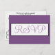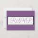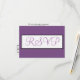 Fundo sólido violeta roxo e empoeirado. O RSVP é escrito em um script elegante retângulo geométrico branco e preto-dentro. Personalize os detalhes de trás na tipografia negra contra fundo branco nítido. Designs originais por TamiraZDesign.