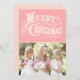 Cartões de foto de Natal personalizável com tipografia ocidental em fundo rosa.