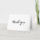 Cartão de Agradecimento de Casamento Simples com Script de Letra à Mão Preta. Elke Clarke © Envie sua mensagem de agradecimento de casamento como recém-casados para seus amigos e familiares usando este cartão de agradecimento de casamento elegante, memorável e simples com as palavras "obrigado" escritas em um script de tipografia de letra à mão preta. Adicione sua mensagem pessoal de agradecimento no verso ou deixe em branco e escreva sua mensagem pessoalmente. Outras cores disponíveis