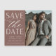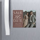 Uma imã salve a data moderna projetada para acomodar sua foto favorita de noivado vertical ou orientada a retratos. "Salve a data" aparece ao lado da sua foto no bloco chic e na escrita, com seus nomes, data de casamento e local do casamento embaixo.