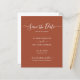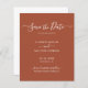 Escrito elegante de orçamento minimalista moderno não fotografado queimado laranja terracotta rust boho desert casamento salve a data anúncio personalizado barato baixo orçamento flyer. Modelo de design simples e limpo apresenta um texto elegante e cursivo de tipografia com letras de mão, o texto "Salvar a Data". Este cartão clássico perfeito para um casal que quer uma data tradicional, salve a data com um toque moderno, sem uma foto. Se precisar de ajuda ou itens correspondentes, entre em contato com o designer.
