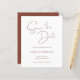 Crie o seu estilo moderno de celebrar o casamento. Uma bela mensagem de texto caligrafia de estilo de linha fina, chamada "obrigado você" contra branco na frente... cor de fundo azul avermelhada escura de terracota no fundo. Verifique a variedade de cores e estilos de papel para esta design de casamento minimalista moderna. Personalize a cor de fundo do terracotta de ferrugem escura para combinar com a paleta de cores do casamento.
