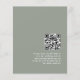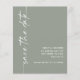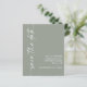 Caligrafia Minimalista Código QR Sage Casamento Verde Salve a Data. Um alternativo com preço inferior a 4,5 x 5,6" em semigloscópio de 110 gsm, semelhante em espessura a um cartão postal. Código QR opcional para o seu site de casamento na parte traseira, que será gerado automaticamente quando você alterar o URL do exemplo para o seu próprio URL do site ou excluir o código do exemplo, se não for necessário. A caligrafia do na moda é girada para o lado esquerdo, com todos os detalhes elegantemente para a direita com muito espaço em branco para um toque contemporâneo. Personalize facilmente com seus detalhes. E altere a cor do texto e do plano de fundo, se desejar, através da opção editar mais.