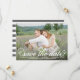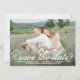 Script Whimsical Branco Salve o Anúncio de data Personalizável salve o lançamento de data com script whimsical e cinzas e fundo listrado branco.