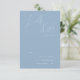 Apresentando nossa impressionante escrita caprichosa | cartão RSVP azul empoeirado perfeito para a sua simples celebração do primavera boho moderno. Nosso elegante design inclui uma paleta de cores vibrante brilhante e pastel com um script de caligrafia quic vintage. Quer você prefira um estilo minimalista ou clássico, nosso produto editável exclusivo oferece luxo e elegância, perfeito para criar um toque clássico, ainda que romântico, para tornar seu dia especial inesquecível. Contacte-nos com quaisquer perguntas sobre o design, e deixe-nos ajudá-lo a fazer o casamento dos seus sonhos.