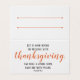 Adicione uma mensagem simples e elegante de Escritura à reunião do Janto de Ação de Graças. Há linhas elegantes no verso para escrever o nome e ou o número da mesa para assentos de hóspedes. O dentro da placa de mesa tem uma mensagem quente e obrigado para que os seus hóspedes aceitem como guardiã. Todo texto é facilmente editável. Este design de Ação de Graças com um roteiro de caligrafia de especiarias laranja rodeado por um simples impressão preto sobre um fundo branco cumprimentará sua Celebração de Ação de Graças com a Escritura que nos lembra de entrar na presença de Deus com a Ação de Graças.