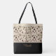 Esta adorável bolsa de tote de moda à frente mostra a palavra "Noiva" em uma cor de texto Ouro-Caramelo sobre o preto com a bolsa de tote superior em Beige com cipós castanho de chocolate e rolas por toda parte. Tem bastante espaço para texto personalizado. Os gráficos e o texto estão em ambos os lados desta bolsa de tote. Alça preta. Personalize mais ou mais comprares, conforme mostrado.