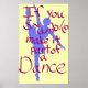 Se você tropeçar faça isso parte de um poster de dança. Tem uma silhueta azul de bailarina dançando.
