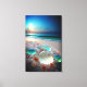 Magical beach scene with sea glass, sand and gently rolling in waves on stretched canvas.