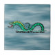 Uma serpente de mar verde escreve sobre as ondas do oceano nesta ilustração original de Richard H. Fay.