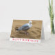 Uma bela fotografia de uma gaivota numa praia arenosa impressa num cartão de aniversário deixou vazio para sua própria mensagem pessoal.