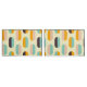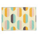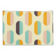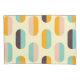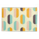 A seamless geometric pattern features vertical, oval shapes in soft yellow, teal, peach, orange, and brown, creating a retro, playful vibe.