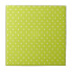 Seamless pattern of evenly spaced small white polka dots on a bright lime green background.
