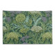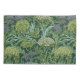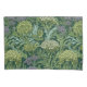 Seamless William Morris style wallpaper pattern featuring dense green foliage and large, rounded flowers in shades of lime green, off-white, and muted lavender against a dark emerald background.