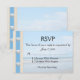 RSVP de Casamento de Praia de Seashell Azul Suave. RSVP do estilo de casamento do excelente para casamentos de praia ou destino. Célula de cor azul macia com fita azul-herdada. Uma praia arenosa e uma foto perfeita de ondas para seu casamento personalizado. Convites, Obrigado e produtos de casamento adicionais disponíveis.