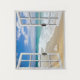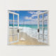 Vista para o mar tropical da praia, cena falsificada da janela, para uma parede sem janelas do escritório. Divertimento, tapeçaria cénico realística da ilusão óptica para um escritório ou parede do estudo.