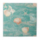 A serene coastal pattern ceramic tile featuring swirling turquoise waves, shimmering seashells, and starfish for a breezy ocean aesthetic. The design blends soft pastels with flowing wave textures, creating a dreamy beach-inspired look. Ideal for ocean lovers, summer décor fans, beach-themed gifts, and anyone who adores coastal style.