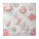 A serene coastal pattern ceramic tile featuring swirling turquoise waves, shimmering seashells, and starfish for a breezy ocean aesthetic. The design blends soft pastels with flowing wave textures, creating a dreamy beach-inspired look. Ideal for ocean lovers, summer décor fans, beach-themed gifts, and anyone who adores coastal style.